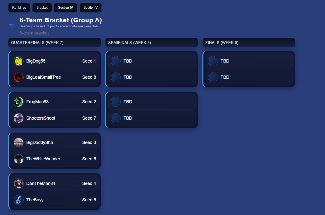 A mid-season bracket lets multiple Sleeper leagues compete in one playoff. We take each team’s in-season points from your chosen Seeding Window (Start → End), rank everyone, then run a bracket appropriate to your type/size.